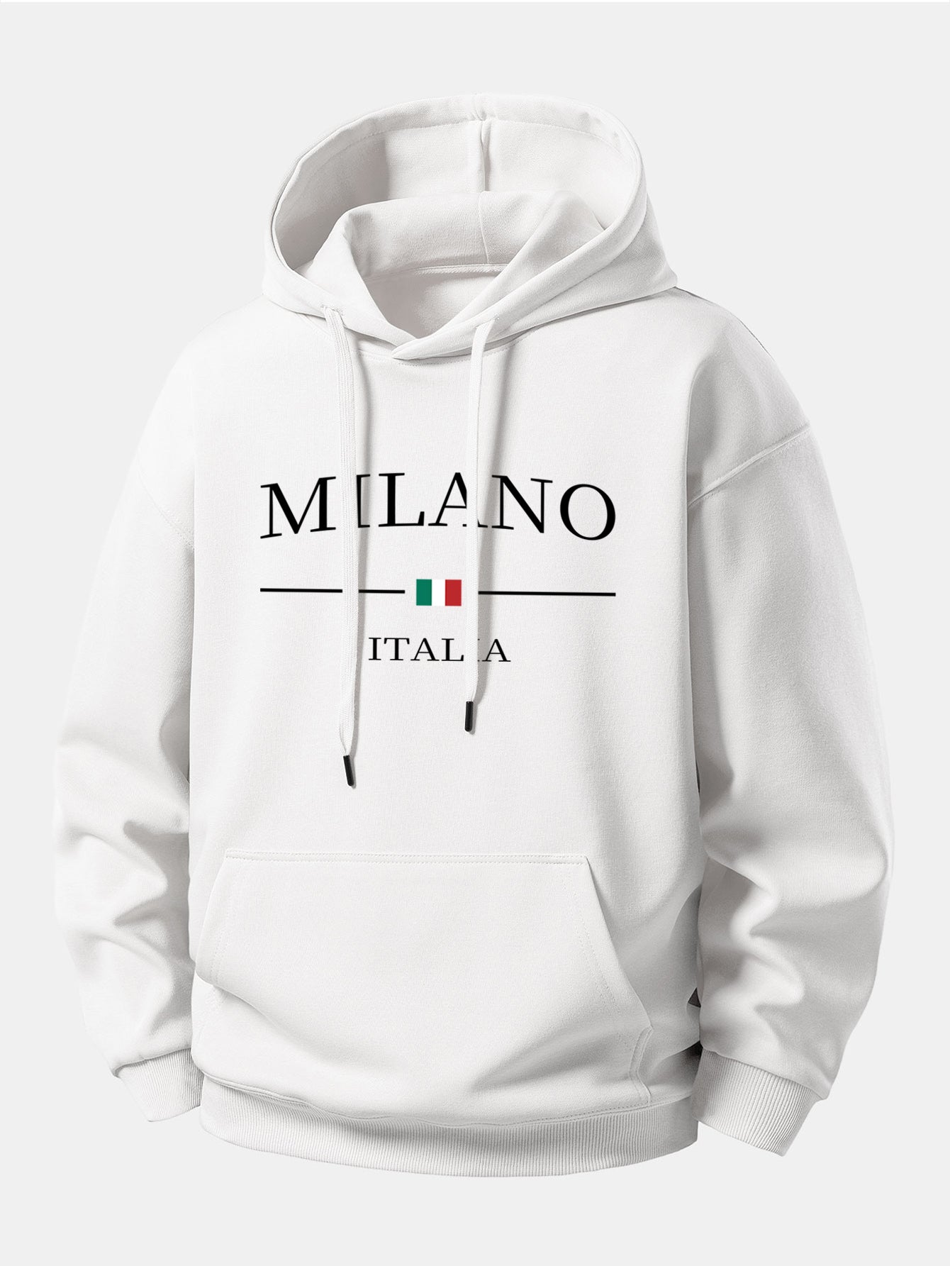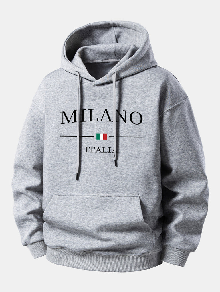 Featuring a clean and modern ''Milano'' graphic on the chest, this hoodie blends simplicity with a touch of European street style. Crafted from soft, breathable fabric, it delivers all-day comfort whether you’re lounging, layering, or heading out.