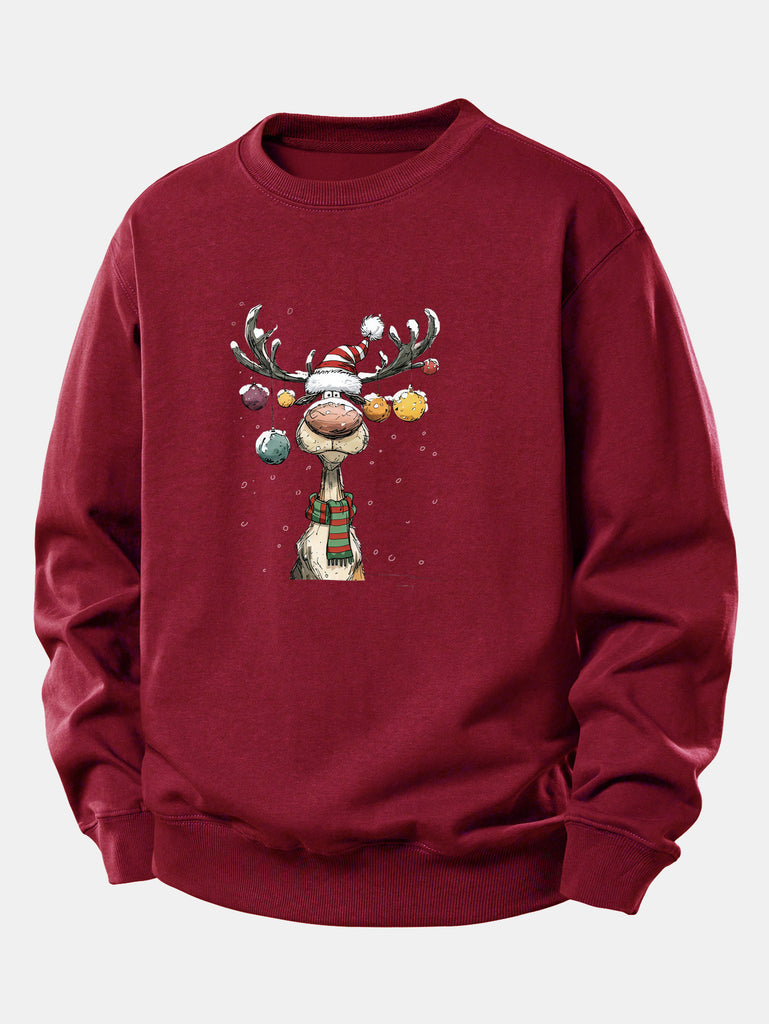 Christmas Light Reindeer Print Relax Fit Sweatshirt