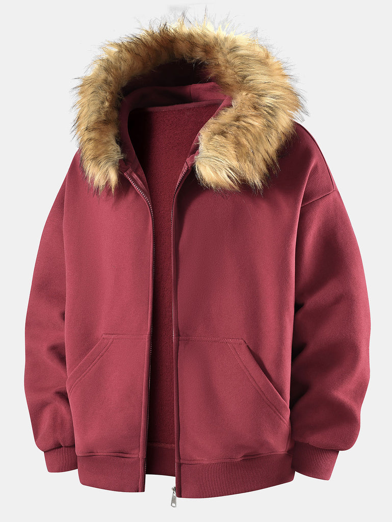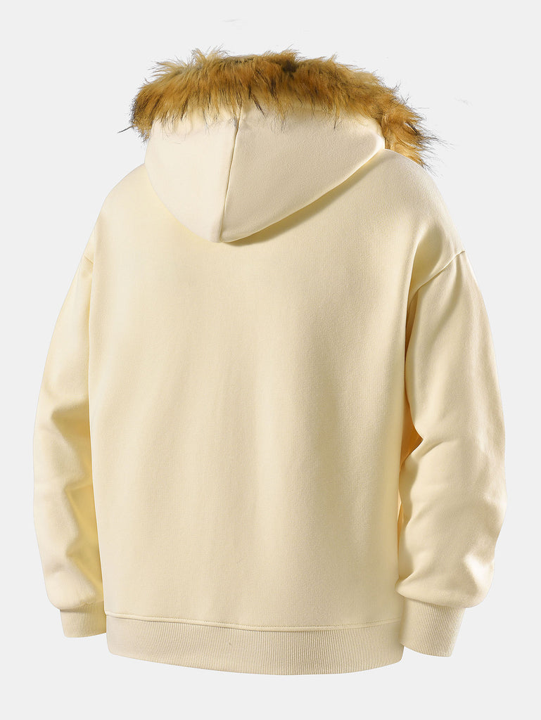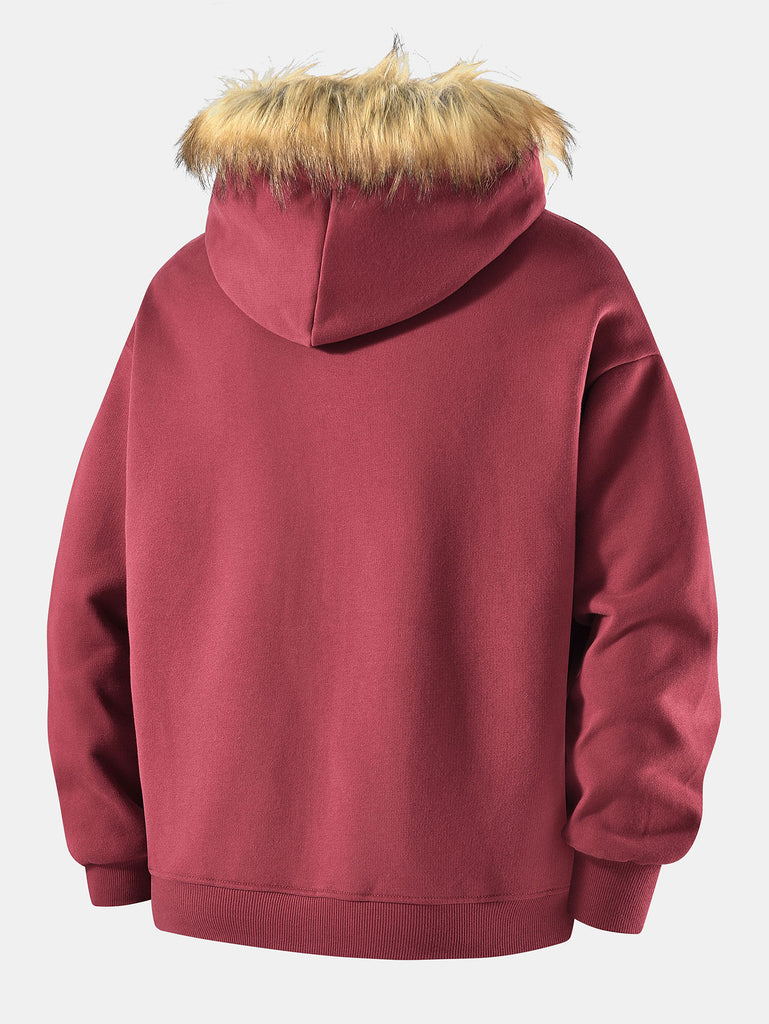 Relax Fit Faux Fur Collar Zip-Up Hoodie