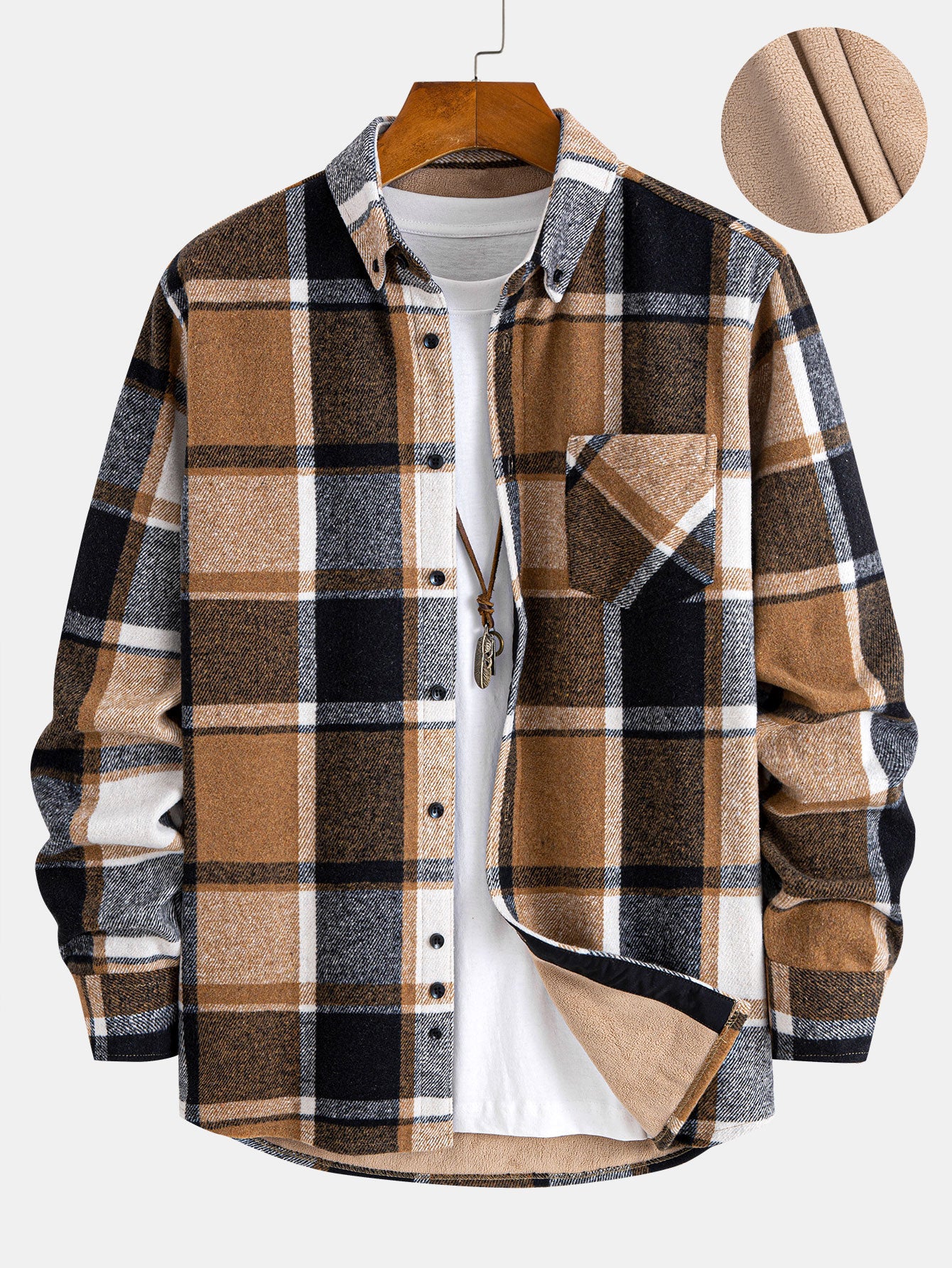 Made with a soft cotton plaid outer and a cozy fleece-lined interior, it delivers superior warmth without feeling bulky. The traditional button-up design adds versatility—wear it as a shirt or layer it like a lightweight jacket.
