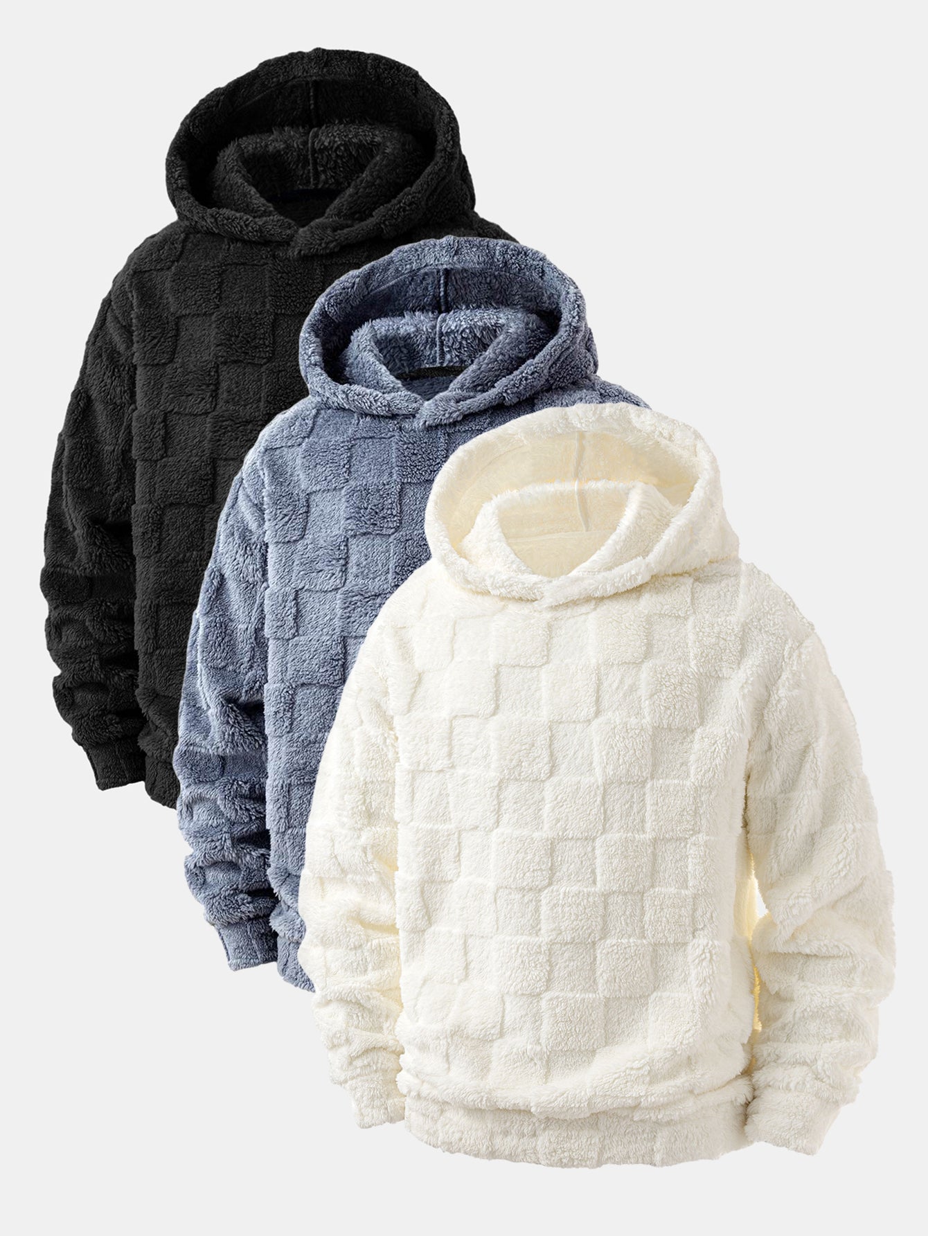3 Pieces Relax Fit Checkerboard Teddy Hoodie