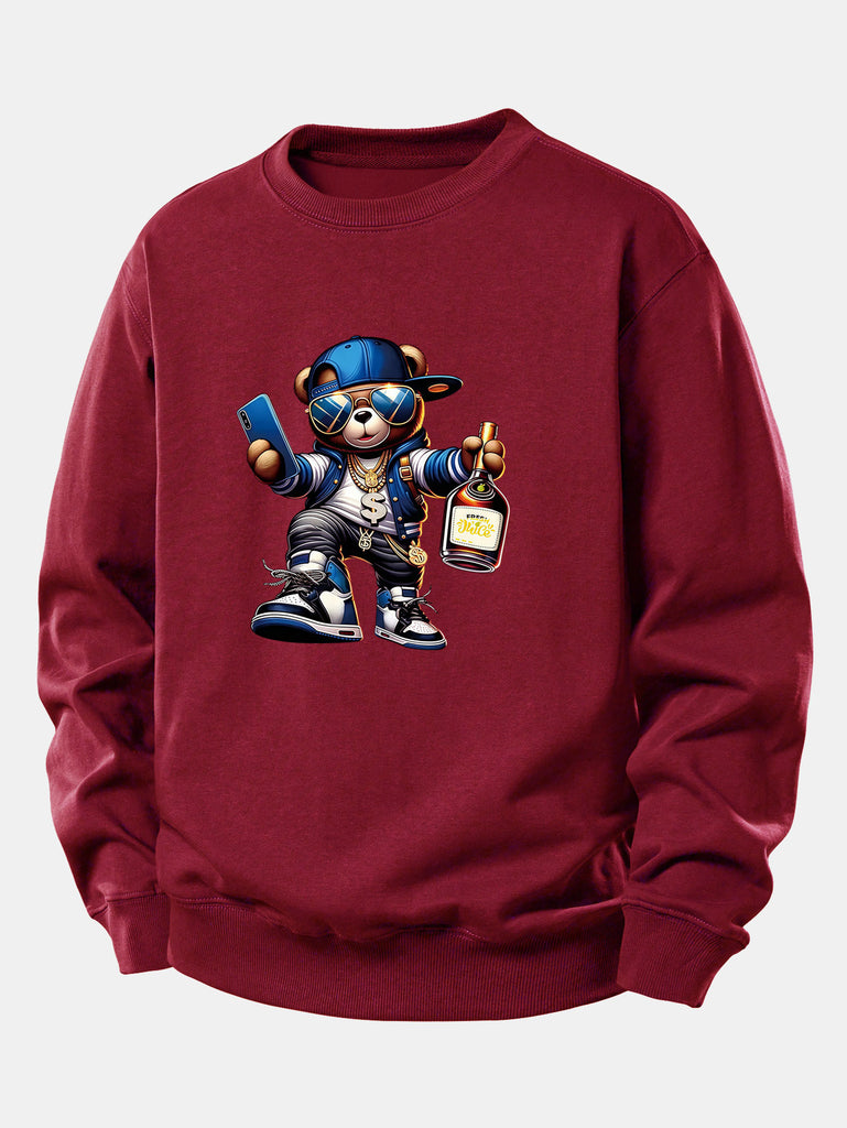 سويت شيرت مريح بطبعة دب الهيب هوب