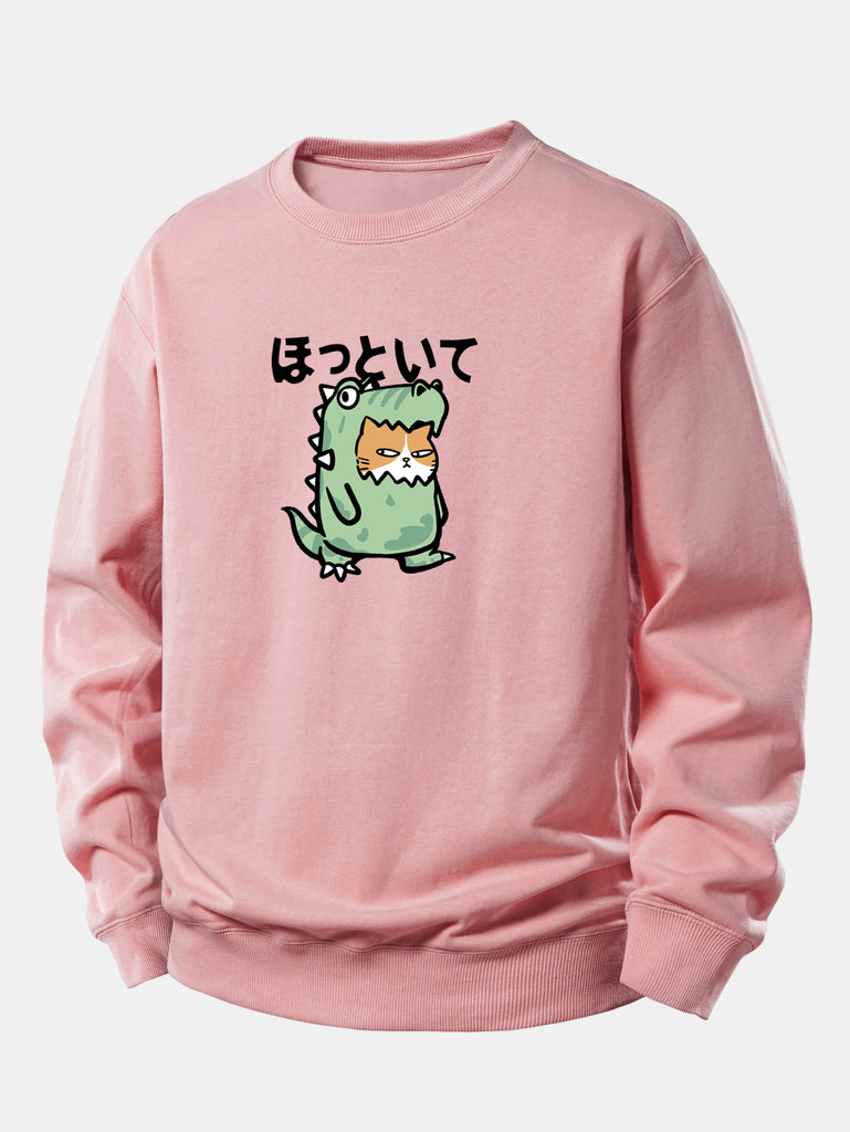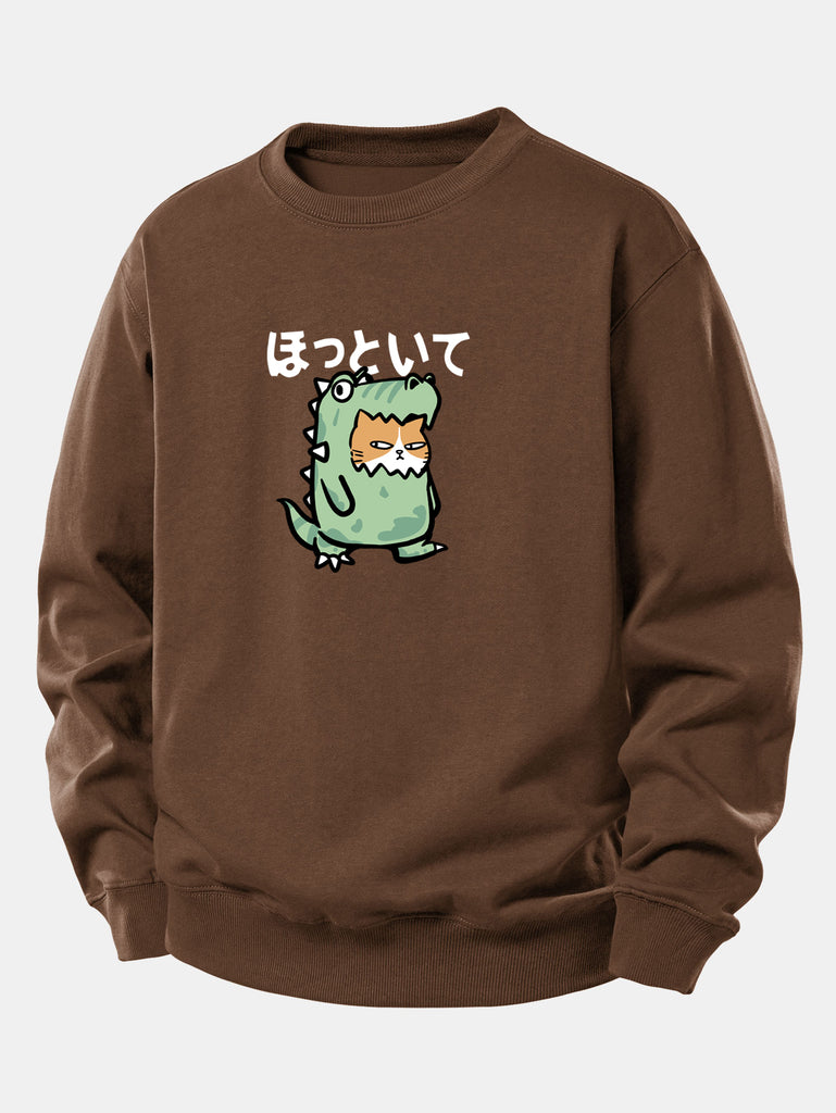 Cat In A Dinosaur Costume Print Relax Fit Sweatshirt