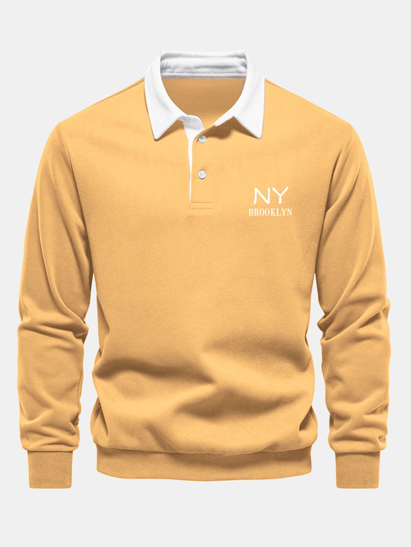 Featuring bold ''New York'' lettering across the front and a stylish contrast polo collar, this sweatshirt combines urban edge with a touch of classic design. The relaxed fit and soft fabric make it a versatile choice for casual wear, streetwear outfits, or layering in cooler weather.